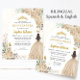 Floral Light Champagne Gold Princess Gown Dress Glitter Sparkle Tiara Crown Butterfly 15th Birthday BILINGUAL Spanish Quinceanera Invitation
