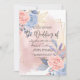 Budget Floral Gold Blue & Pink Brush wedding Invitation