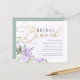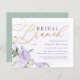 Elegant bridal brunch bridal shower invitation featuring faux gold foil script against a light purple/lavender overlay with beautiful watercolor peonies and roses in shades of light purple cream. Your details are displayed with simple, stylish typography. As part of the budget selection here on Zazzle, these invitations do not come with envelopes nor do they fit snugly in a standard-sized envelope. The closest size is A6 but there will be a gap of approximately half an inch. If you don't mind the lack of snugness you could use such widely available A6 envelopes. Otherwise, this design can be transferred to a standard 5x7 format (which comes with envelopes) using the design transfer tool. As a rough guide, as of the time of writing, 100 budget invitations (including a volume discount) would cost around $39 whereas 100 standard 5x7 invites including envelopes would cost approximately $135. Your mileage may vary depending on Zazzle's available promo codes, site-wide sales, or changes in pricing.