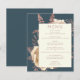 This elegant wedding menu features a lush, romantic floral bouquet in ivory with rose gold faux foil and glitter foliage on a teal background. Customise the rose pink text in stylish fonts on an ivory rectangle. The back of the card is solid teal.