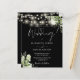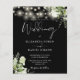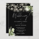 This elegant black and white wedding invitation, featuring pretty string lights and floral greenery, can be personalised with your information in chic typography with your monogram initials on the reverse. Designed by Thisisnotme©
