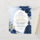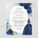 Floral Navy Blue Gold Princess Gown Dress Glitter Sparkle Tiara Crown Butterfly 15th Birthday Quinceañera Invitation