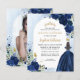 Budget Floral Navy Blue Gold Photo Quinceañera