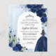 Floral Navy Blue Faux Silver Grey Princess Gown Dress Glitter Sparkle Tiara Crown Butterfly 15th Birthday Quinceanera Invitation