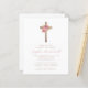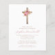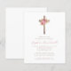 Budget Floral Pink Gold Cross Girl Baptism Invite