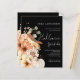 A smaller 4.5 x 5.6” invitation at a budget price on a semi-gloss 110lbs card similar in thickness to a postcard (although can’t be sent as a postcard). Floral Pumpkin Script Halloween Party Black. A set handwritten script for Halloween Soirée and the rest of the text you can easily personalise. Fall coloured florals and pumpkin run down the left hand side and across the bottom and are also on the back,