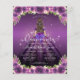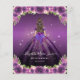 Floral Dark Purple Violet Lavender Princess Gown Dress Gold Glitter Sparkle 15th Birthday Quinceanera Invitation