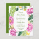 Budget Watercolor Floral Pink Peonies Tulips Quinceañera Save the Dates Announcements Invitations features a floral frame of pink tulips, pink peonies, lemon citrus with palm fronds and greenery with gold shimmer accents on a white background. Inside is your custom Quinceañera save the date information. Personalise by editing the text in the text boxes. Designed for you by Evco Studio www.zazzle.com/store/evcostudio