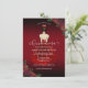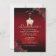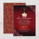 This elegant budget Quinceañera invitation features girl in red gown with red and gold rose floral accents. Back features red and gold rose pattern. Easy to customise by clicking "Personalise".