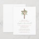 Budget Floral Rose Gold Cross Girl Baptism Invite