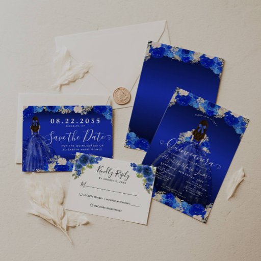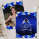 Floral Royal Blue Princess Gown Dress Glitter Sparkle 15th Birthday Photo Quinceanera Invitation