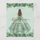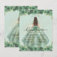 Floral Sage Green Princess Gown Dress Glitter Sparkle 15th Birthday Quinceanera Invitation