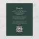 This elegant vintage-inspired wedding invitation design features a pair of white monogram initials in open serif font above and below a dividing line and encircled by a line art acanthus crest on a dark forest green background. The reverse side provides space for wedding details on a solid dark green background, along with a QR code guests can scan to visit your website and RSVP.