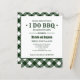 Classic Forest green and white design colours with gingham plaid pattern for this rustic and festive I DO BBQ engagement party or couples shower invitation