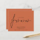Budget Decided on Forever QR code Terracotta Save the Date A budget price SMALLER 4.5” x 5.6” alternative. Available in a SEMI-GLOSS 110 lb CARD STOCK which is the default option (thicker for invitations), OR a SATIN FINISH 80 lb THINNER PAPER STOCK (ideal for enclosures). Add your QR code to your wedding website on the back. A stylish set script is in the centre.The rest of the text you can easily personalise. Text and background colours can be changed if you wish to better suit your wedding theme via the customise further option.