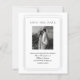 Design features clean and classic black and white design which makes it minimalist and elegant. It features a simple double-line border with round corner details that frame the layout. There is also a photo at the centre that the couple can personalised. The mix of script and serif fonts are like traditional calligraphy, but with a modern twist. A great choice for couples who love minimalist style with a hint of vintage charm.