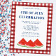This festive invitation is perfect for any Fourth of July celebration theme.