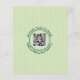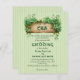 Wooden frame with greenery and initials St Patrick's Day Irish BUDGET wedding invitation. This affordable wedding invitation features a charming vintage rustic style, perfect for a St. Patrick's Day celebration. The wooden frame, embellished with vibrant greenery and the initials of the couple, creates a delightful focal point. Against a backdrop of soft green stripes, the elegant Celtic font adds a touch of sophistication to this beautiful invitation. On the reverse side, a striped pattern complements the design, while a convenient QR code allows guests to RSVP online, making it a practical choice for modern couples.