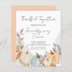 This budget boho pumpkin fall Friendsgiving Dinner invitation is perfect to invite your friends and family to a holiday dinner. The design features beautiful watercolor pumpkins in white, blue and orange with boho florals in terracotta and ivory with greenery. An elegant script font is the perfect finishing touch. Personalise with all of the details for your dinner.