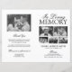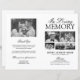 Elegant budget memorial program featuring a classic white background that can be changed to any colour, 5 photos of your lost one, the funeral details, an obituary, order of service, the details of the wake, another photo on the back page, and a personalised thank you note. PLEASE NOTE: These come as a flat piece of quality paper, you will need to fold them yourself.