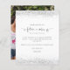 Future Mrs Photo Silver Glitter Bridal Shower Thanks. A budget price SMALLER 4.5” x 5.6” alternative. Available in a SEMI GLOSS 110 lb CARD STOCK which is the default option (recommended for invitations), OR a SATIN FINISH 80 lb THINNER PAPER STOCK (ideal for enclosures). Envelopes are an optional extra and are slightly larger than the card size. The Future Mrs is in an artsy set script with ring and heart motifs and the rest of the text you can easily personalise. Elegant silver glitter borders the top and bottom edges. Replace the sample photo on the back with a fun picture from your event.