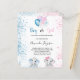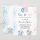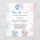 For a gender reveal baby shower. A chic white background. Decorated with glitter and blue, pink and white balloons and glitter dust. A baby boy elephant and a gaby girl elephant. Personalise and add the name of the mum to-be and party details. The name and the text: Boy or Girl are written with a hand lettered style script