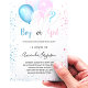 For a gender reveal baby shower. A chic white background. Decorated with glitter and blue, pink and white balloons and glitter dust. Personalise and add the name of the mum to-be and party details. The name and the text: Boy or Girl are written with a hand lettered style script