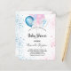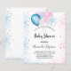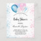 For a gender reveal baby shower. A chic white background. Decorated with glitter and blue, pink and white balloons and blue and pink faux glitter dust. Personalise and add the name of the mum to-be and party details. The name and the text: Baby Shower are written with a hand lettered style script