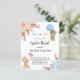 For a modern boho style baby shower, gender reveal party. A white background. Decorated with rose gold, pink and light blue florals, roses, pampas grass and a two teddy bears holding balloons. Personalise and add a name and party details.