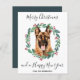 Send christmas greetings this holiday season with this elegant Merry Christmas German Shepherd in a wreath design card, and matching decor. This german shepherd holiday card features a watercolor dog in a green and red wreath with holly and berries. Personalise with family name . This german shepherd christmas card will be a favourite among german shepherd lovers, dog lovers, and animal lovers. Visit our collection for matching german shepherd christmas cards, home decor, and gifts. COPYRIGHT © 2020 Judy Burrows, Black Dog Art - All Rights Reserved. Budget German Shepherd Dog Merry Christmas Card