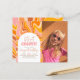 Let's get groovy! Custom photo birthday party invitations. A vibrant and playful birthday party invite with bright colours, a chic arch, and retro-inspired typography. The front of these budget cards features a big hippie swirl pattern. There is a white arch overlay for the event details. The text starts with "Let's get groovy!" in a chic combination of casual handwriting script and groovy typography. This design features a bold 60s & 70s pink, orange, and yellow colour scheme. On the right-hand side of the card, there is a photo of the birthday girl in a retro wave border. These birthday invitations reverse to the same colourful background. A modern take on a retro theme! These invites are perfect for spring birthdays or summer parties. Any age girl birthday party invitations. This invitation template is editable online, simply click on "Personalise this template" to get started. For more advanced edits, select "click to customise further" to access Zazzle's Design Tool. As part of the budget selection on Zazzle, this sheet isn't a standard invite size or paper quality. If you want this design on an invitation card you can find it in our store or use the Zazzle Make Machine to transfer it onto the product of your choice. Please note the cards are printed as you see them on your screen when ordering, so be sure to double-check for typos! Other versions of this design are available in the collection linked on this page. Browse my store for more girl birthday party invitations.