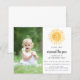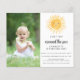 This cute budget invitation is decorated with a yellow watercolor smiling sun and stylish script typography.
