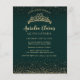 Chic Sparkling Emerald Gold Glitter Tiara Quinceanera Invitation