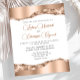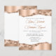 The top and bottom edges of this elegant modern wedding invitation feature a glam rose gold faux foil and mirror tiles border. The customisable text combines dark rose script with charcoal grey sans serif and italic fonts on a white background. The reverse side features a matching rose gold foil and mirror border design.