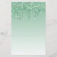 This trendy 21st birthday invitation features a sparkly green faux glitter drip border and green ombre background. The words "21st Birthday" and the name of the guest of honour appear in casual green handwriting script, with the rest of the customisable text in green sans serif font. The same green glitter drip design appears on the reverse side.