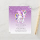 Baby Girl Shower, naming ceremony, birth announcement, gender reveal invitation featuring unicorn, sparkles, glitter and foil graphics (not real glitter or foil) in pink, gold, purple, lilac shades. This budget low-cost quality invitation is also perfect for trendy Quinceanera, baby or bridal shower, 1st, 2nd, 12,13, 15th birthday, Baptism (add a cross graphic if desired) Christening, first holy communion and more.