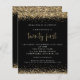 A value for money BUDGET alternative on a smaller size 4.5 x 5.6” semi-gloss 110lbs weight, which is of similar thickness to a postcard (however is not suitable to use as a postcard.). PLEASE NOTE there is ONE invite per sheet Gold Glitter 21st Black Party Invitation. Elegant gold faux glitter confetti borders are at the top and bottom and also on the back on a classic black background. Twenty First is set in a modern handwriting style. Easily personalise the rest of the text to your own.