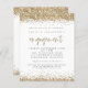 A value for money BUDGET alternative on a smaller size 4.5 x 5.6” semi-gloss 110lbs weight, which is of similar thickness to a postcard (however is not suitable to use as a postcard.). PLEASE NOTE there is ONE invite per sheet Gold Glitter Borders Engagement Invitation. Elegant gold faux glitter borders are at the top and bottom on both sides. Engagement is set in an informal handwriting style and the rest of the text you can easily personalise.