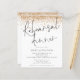 A budget price SMALLER 4.5” x 5.6” alternative. Available in a SEMI-GLOSS 110 lb CARD STOCK which is the default option (thicker for invitations), OR a SATIN FINISH 80 lb THINNER PAPER STOCK (ideal for enclosures). Envelopes are an optional extra and are slightly larger than the card size, This modern design has elegant informal set script for Rehearsal Dinner and a border of gold faux glitter at the top on each side. The rest of the typography you can easily personalise. You can also change text and background colours on either side if you wish via the Customise Further option.