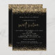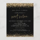 Gold Glitter Sweet Sixteen Black Party Invitation. A budget friendly SMALLER 4.5” x 5.6” alternative. Available in a SEMI GLOSS 110 lb CARD STOCK or a SATIN FINISH 80 lb THINNER PAPER STOCK. Envelopes are an optional extra. Elegant gold faux glitter confetti borders are at the top and bottom and also on the back on a classic black background. Sweet Sixteen is set in a modern handwriting style. Easily personalise the rest of the text to your own.