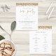 Budget Gold Glitter Weekend Hen Party Invite. A budget price SMALLER 4.5” x 5.6” alternative. Available in a SEMI-GLOSS 110 lb CARD STOCK which is the default option (thicker for invitations), OR a SATIN FINISH 80 lb THINNER PAPER STOCK (ideal for enclosures). Envelopes are an optional extra and are slightly larger than the card size. The main header Hen Party is in a gold set script typography and the rest of the text you can easily personalise, as well as your itinerary details on the reverse.