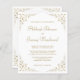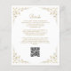 This elegant vintage-inspired formal wedding invitation features the text in gold coloured script and serif fonts, framed by a delicate vintage gold vine motif. The frame is repeated on the reverse. The reverse side provides space for wedding details, along with a QR code guests can scan to visit your website and RSVP, which saves the cost of printing and mailing separate RSVP cards.