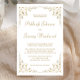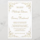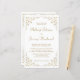This elegant vintage-inspired formal wedding invitation features the text in gold coloured script and serif fonts, framed by a delicate vintage gold vine motif. The frame is repeated on the reverse.