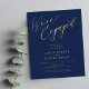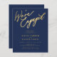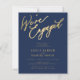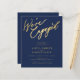 Simple minimal chic whimsical faux gold calligraphy and navy we're engaged script BUDGET AFFORDABLE engagement party invitation.
