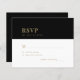 Elegant minimal bold typography classic black and gold wedding invitation rsvp card with a dark moody classy look. +++++++ Suitable for any season formal wedding ceremonies and receptions. ++++++++++ PLEASE READ THIS BEFORE PURCHASING! This is a budget affordable wedding card printed on a paper sheet (each sheet has one card). ++++ For the best rapport price-quality, our advice is to choose the Semi-Gloss paper type (it is thick enough to be used for stationery) ++++ If you need envelopes, choose the ENVELOPE OPTION. +++ Double-check all the information and spelling of your text because you will receive exactly what you see - no one else will check anything before printing. ++++ This card is designed for size 4.5" x 5.6". In the case you choose another size of the card and text goes outside page, everything needs to be fixed before adding the product to cart. Please ask Live Design Service for help.