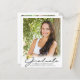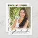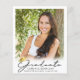 Announce your high school or college graduate's achievement with this budget-friendly alternative announcement printed on 4.5x5.6-inch lightweight paper instead of cardstock and featuring 5 photos (1 on the front and 4 on the back) and a modern, elegant handwritten script typography GRADUATE title design in black with a faux metallic gold foil graduation cap or mortarboard accent. The back is designed to include information about your graduate's achievements, activities and future plans as desired. Ideal for conservative budgets and/or hand delivering. ASSISTANCE: For help with design modification or personalisation, colour change or transferring the design to another product, contact the designer BEFORE ORDERING via the Zazzle Chat MESSAGE tab or email makeitaboutyoustore@gmail.com.