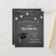 Save money on invitations with this smaller invitation that has an option for envelopes. Get your guests ready for your graduation party with your Graduation Hat, Grey Chalkboard & Mason Jar String Lights Graduation Party invitations.