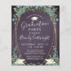 Beautiful non-photo, budget-friendly graduation party invitations printed on 4.5x5.6-inch lightweight paper featuring watercolor eucalyptus and greenery with gold glitter accents, white graduation caps or mortarboards and chic modern handwritten script typography against a brushed purple background. Ideal for conservative budgets and hand-delivering to guests. ASSISTANCE: For help with design modification/personalisation, colour change, transferring the design to another product or if you would like coordinating items, contact the designer BEFORE ORDERING via the Zazzle Chat MESSAGE tab or email at makeitaboutyoustore@gmail.com.