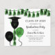 Budget Black and Green Balloons With Graduation Hat and Tassel Garland Graduation Party Invitations.