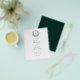 Introduce your wedding with a stunning emerald green invitation featuring an elegant floral crest monogram. The soft sage green hue exudes natural beauty and serenity, while the floral crest adds a timeless, sophisticated touch. Perfect for couples seeking a refined and graceful design, this invitation blends classic charm with modern elegance. The personalised monogram makes it uniquely yours, setting the tone for an unforgettable celebration. Ideal for garden or formal weddings, this invitation beautifully reflects your special day.